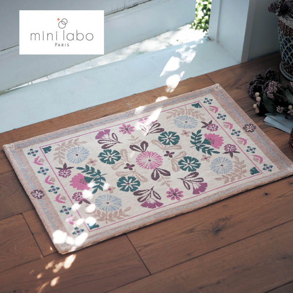 ーデザイン・スタイリングー・ふっくらとした質感が魅力のシェニール糸を柄の一部に使い、細かな凹凸感のある繊細なデザインを表現・玄関にふさわしい高級感漂う仕上がり・アクセントマットとして玄関以外のいろんな場所にも。ー素材ー・やわらかなシェニール糸を部分的に使用していて表情豊かー機能ー・すべり止めシート付きミニラボパリのデザイナーが生み出す大人かわいい世界「mini labo(ミニラボ)」は、パリで活躍する2人のクリエイター、キャロリーヌとセリーヌによるクリエイションブランド。パリの気分が詰まった、華やかで夢のあるミニラボワールドをつくりあげています。