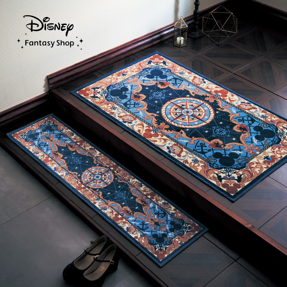 ジャカード織りならではの光沢と高級感が魅力光の当たり方によって色の見え方が変わるのも特徴羅針盤や灯台などクラシックなモチーフをデザインミッキーマウスが船で冒険に出る、という物語をイメージしたデザイン玄関マットはもちろん、アクセントラグにしても素敵毛足が短いため劣化しにくく掃除もラク手洗いできるのもうれしい日本の工場で織り、加工してお届けお客様に家にいながらディズニーの世界観をより感じていただけるような商品を作りたい。そんな想いを込めて生まれた商品です。高級感のある壮大なデザインはミッキーマウスが海へ冒険に向かうストーリーをイメージしています。光沢感のある糸を使用したジャカードの手法を用い、リッチなホテルのじゅうたんを彷彿とさせるような商品に仕上がりました。お家にいても毎日気分が上がるような、特別で感動的な気分になれるような商品が出来上がりました。ちょっとリッチだけど一生もののお買い物になるような自慢の一品です。