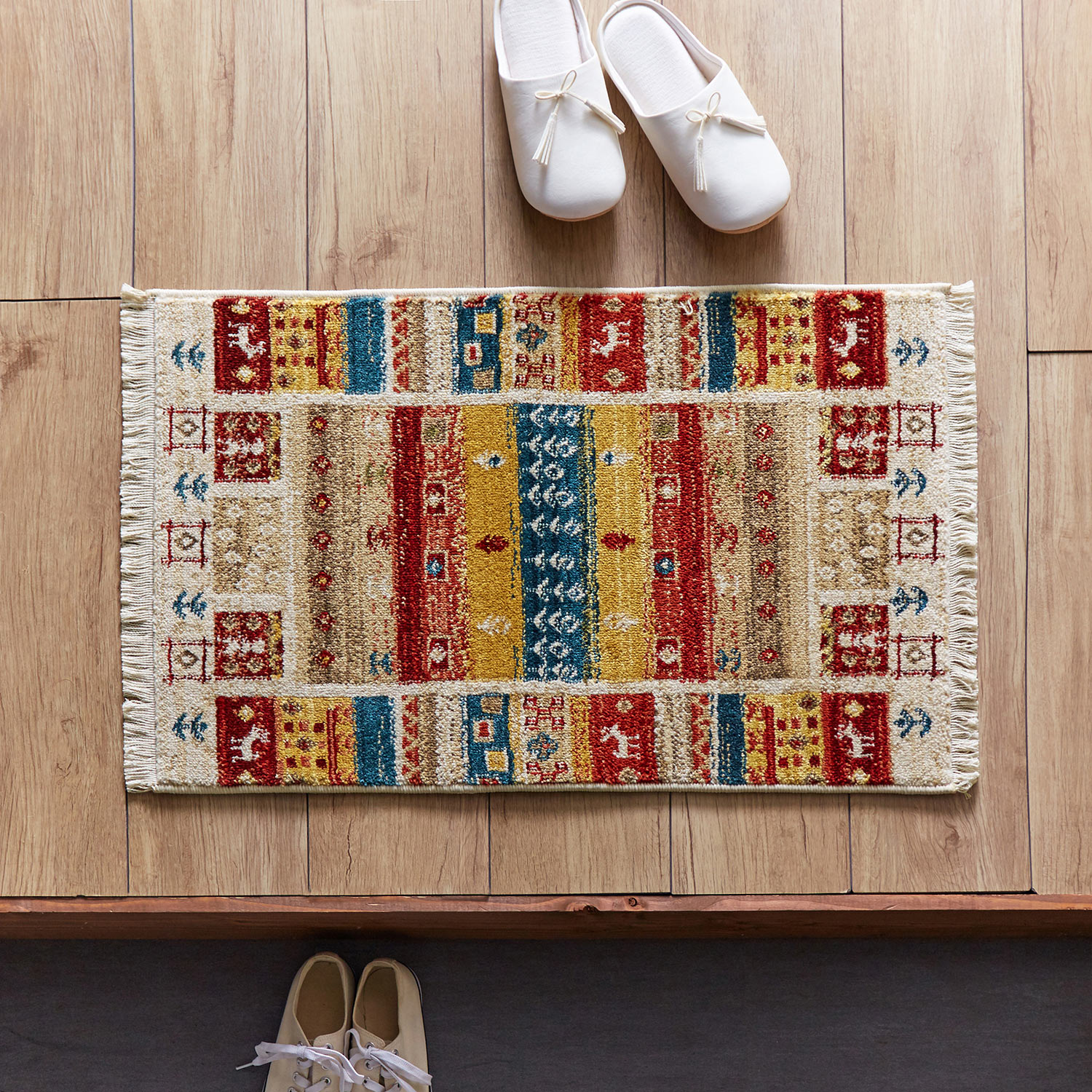 ■【ベルメゾン】ギャッベ風デザインのウィルトン織り玄関マット