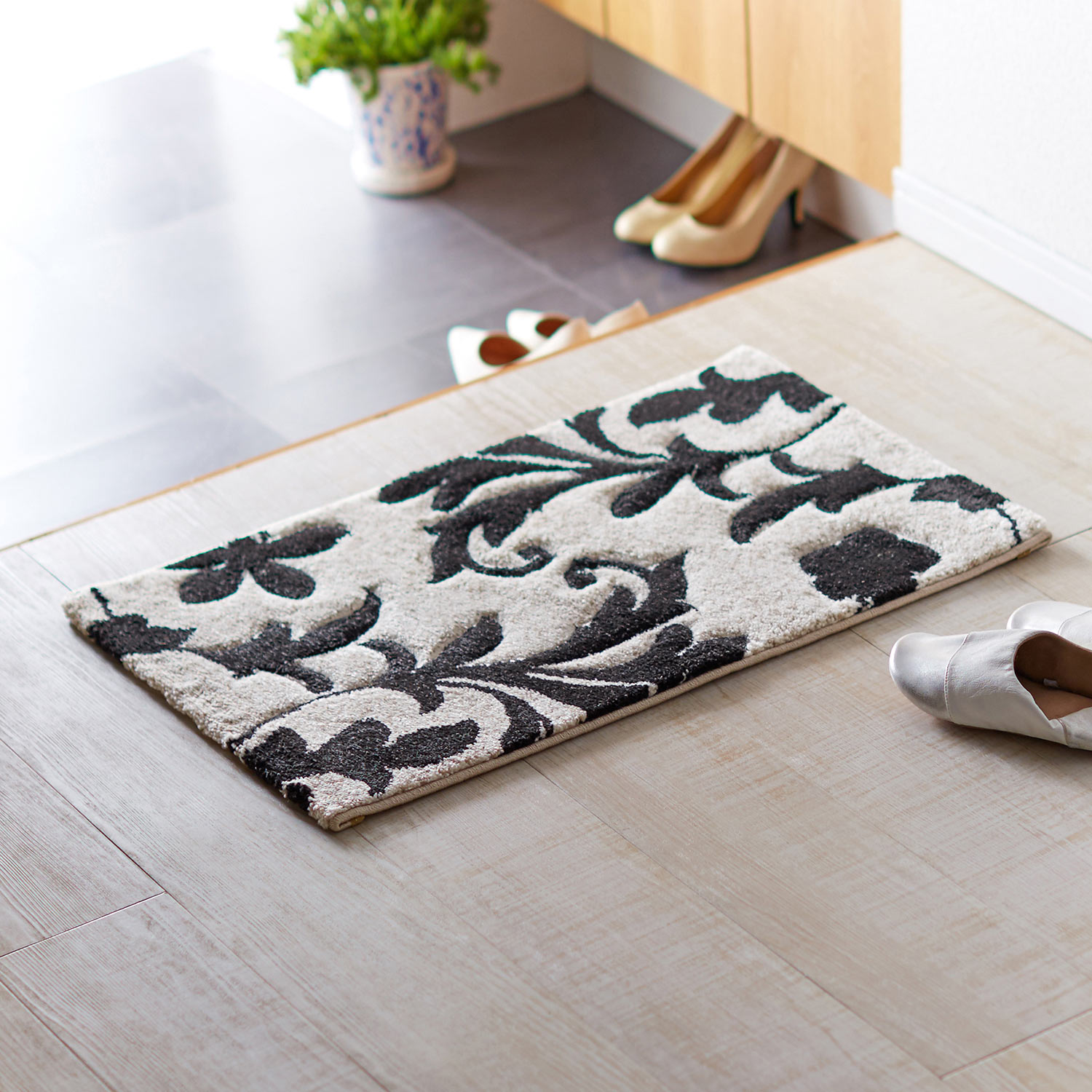 細やかなジャカードの織り柄が高級感たっぷりしっとりなめらかな足触りが魅力です毛足が短めで密度があり、掃除機が掛けやすいのが魅力汚れたら洗濯機で洗えるので、お手入れも簡単です裏面にはすべりにくい加工をほどこしました玄関の上がりかまちにも対応する奥行短めサイズや、広い玄関にも対応するものなど、サイズをお選びいただけます