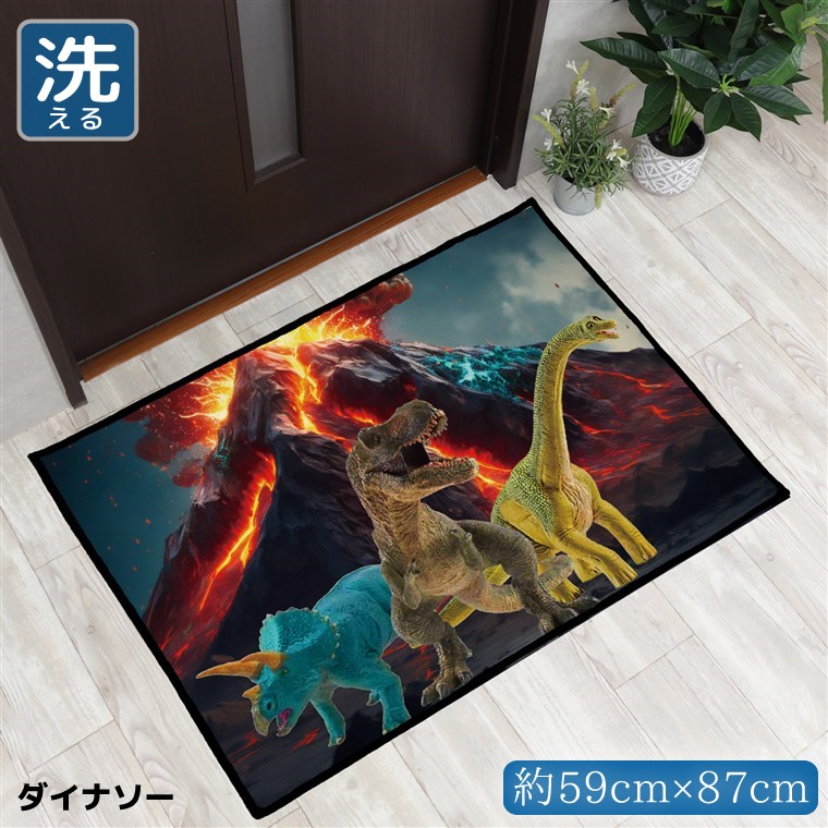 ■玄関マット 室内 おしゃれ 洗える 恐竜 キッチンマット アクセントマット イラスト マット 敷物 転写プリント ダイナソー