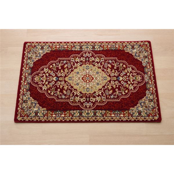■トルコ製 ウィルトン織り 玄関マット 『ベルミラ』 ワイン 約60×90cm 【北海道・沖縄・離島配送不可】
