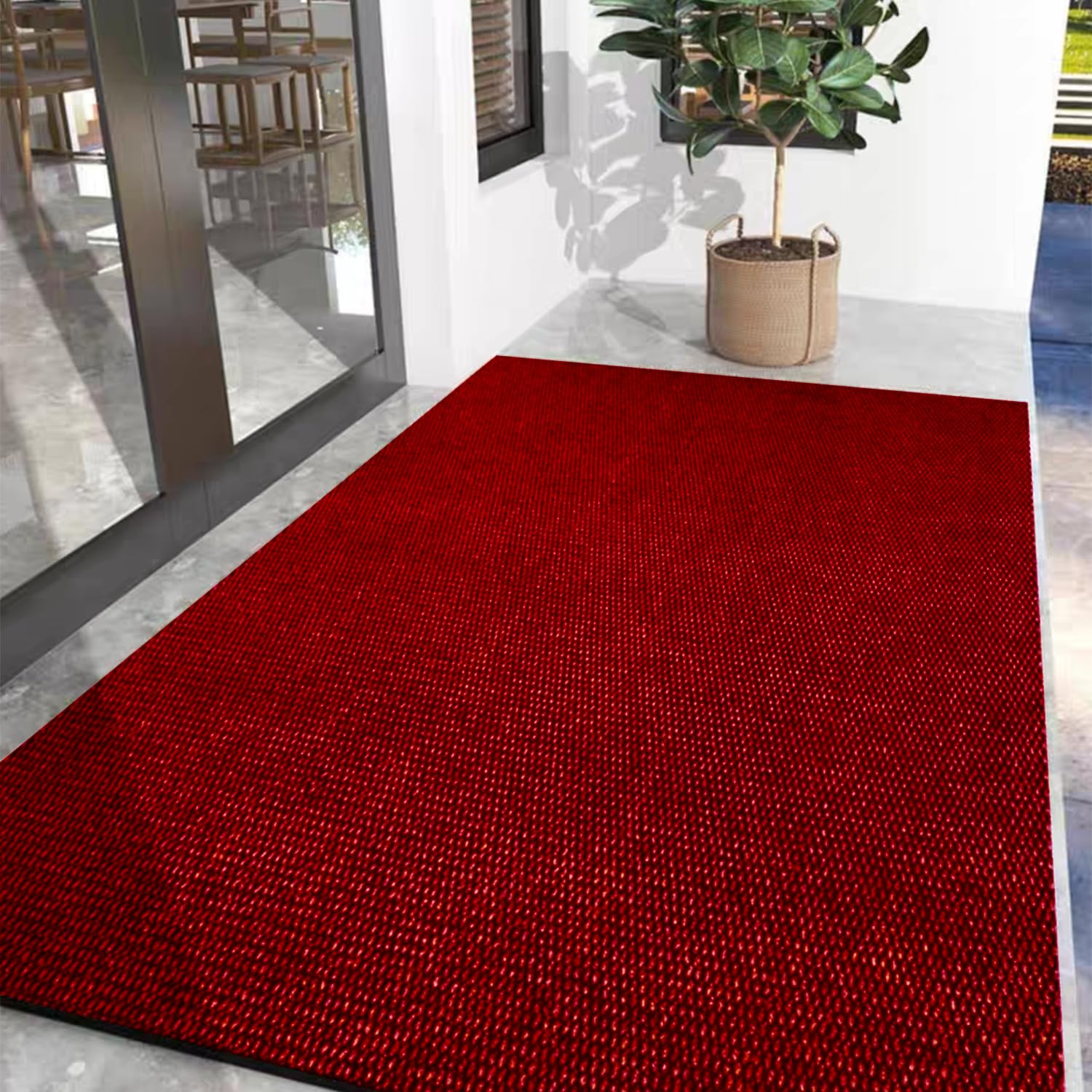 ■玄関マット キッチンマット無地 大判 屋外 室内 業務用 滑り止め マット シンプル 泥落とし 足ふきマット(レッド40*60)