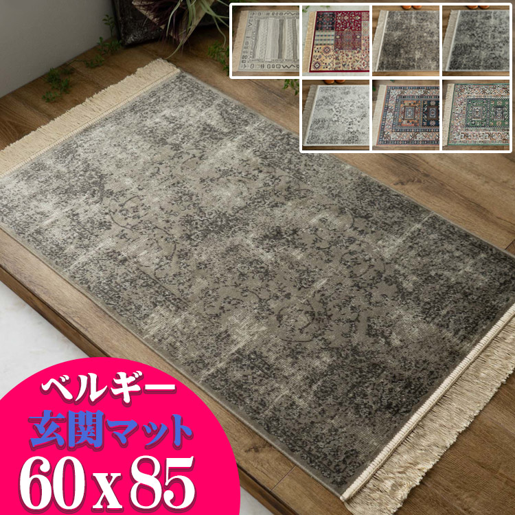 ■玄関マット 室内 60×85 屋内 おしゃれ シルク タッチ ペルシャ 絨毯 柄 高級 ラグ ベルギー製 レッド オレンジ グリーン マルチ ベージ