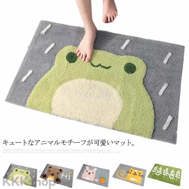 玄関マット 浴室 室内 洗える 45×70cm 50×80 お風呂 吸水性バツグン 滑り止め ふかふか マット 速乾 可愛い お洒落 動物 キュート 犬 カエル 熊 うさぎ 植物 インテリア