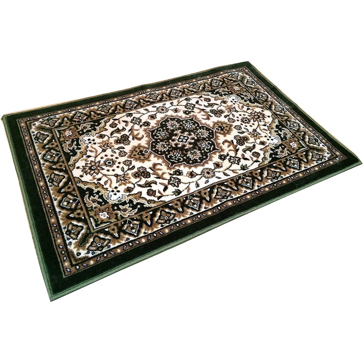 ■【i】玄関マット 洗える モケット織り 王朝柄 『メンデル』 グリーン 約60×90cm 滑りにくい加工【北海道・沖縄・離島不可】