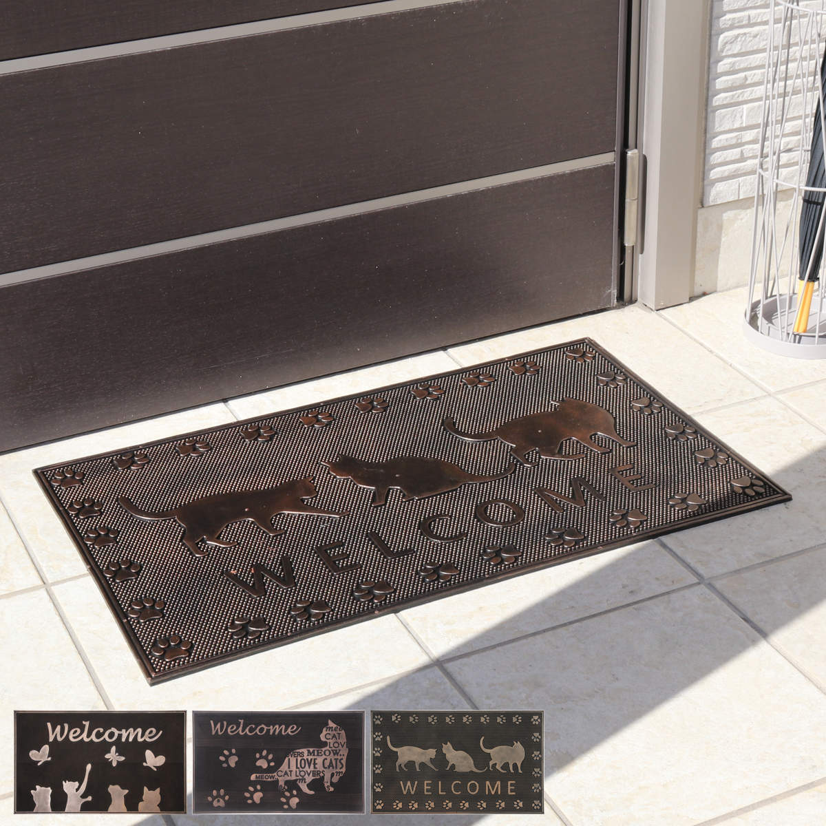 ■玄関マット 屋外 ラバーマット 猫 45×75 ( 泥落とし 洗える 水洗い 弾力 マット 滑り止め 雨 ラバー ゴム 幅75cm ネコ おしゃれ カフェ