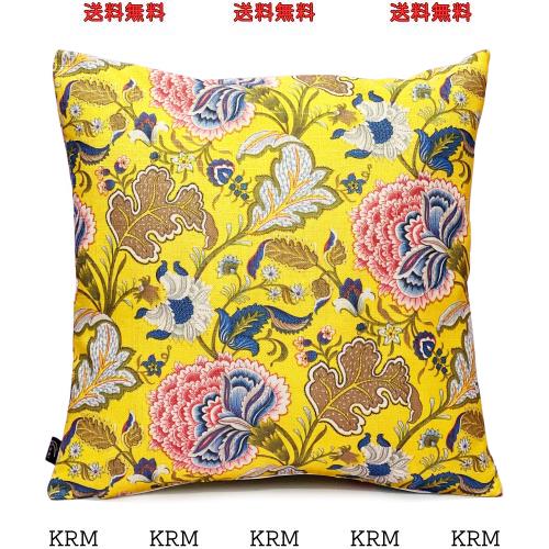 ■Kuai クッションカバー 45cm レトロフラワー ヴィンテージ風 モダン 花柄 アジアン 北欧 インテリア ポリエステル (イエロー)