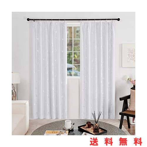 ■Deconovo 1級遮光カーテン 花柄 省エネ 昼夜目隠し 銀箔プリント 2枚組 幅100cm丈178cm ホワイト