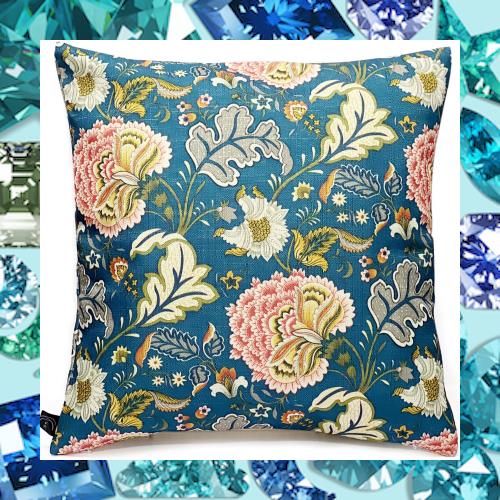 ■Kuai クッションカバー 60×60cm レトロフラワー ヴィンテージ風 モダン 花柄 アジアン 北欧 インテリア ポリエステル (ダークブルー)
