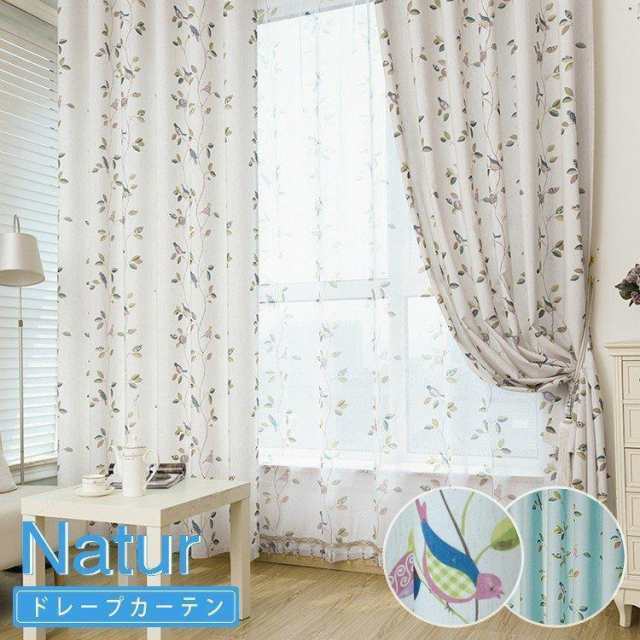カーテンセット 花柄 植物柄 鳥 オーダーカーテン 北欧 ホワイト かわいい おしゃれ エレガント 子供部屋 安い幅60cm?150cm丈60cm?260cm