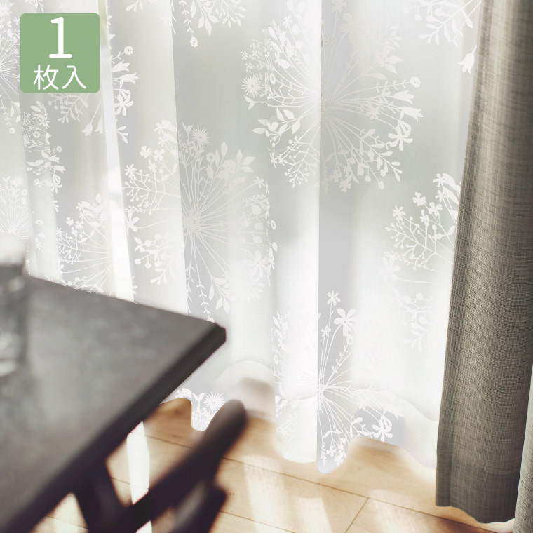 ※当商品はメーカー直送品の為、ゆったり後払い・代金引換をご利用頂けません。 また、商品発送後のキャンセルは承っておりません。尚、北海道・沖縄・離島などの一部地域はお届けまでに通常よりお時間を頂きます。〇サイズ100×133cm〇素材ポリエステル100%〇仕様※1枚入り◆スペック:・日本製 ・ウォッシャブル〇商品コメント大胆なレイアウトとは裏腹に繊細に描かれた植物のシルエットをオパールプリントで表現した、繊細で美しいレースカーテンです。ご家庭でお手入れしやすいウォッシャブルタイプ。生地のデザインを楽しめるシンプルな1.5倍ヒダ仕上げ。丈の微調整が可能なアジャスターフック付きでお届けします。安心品質の日本製。