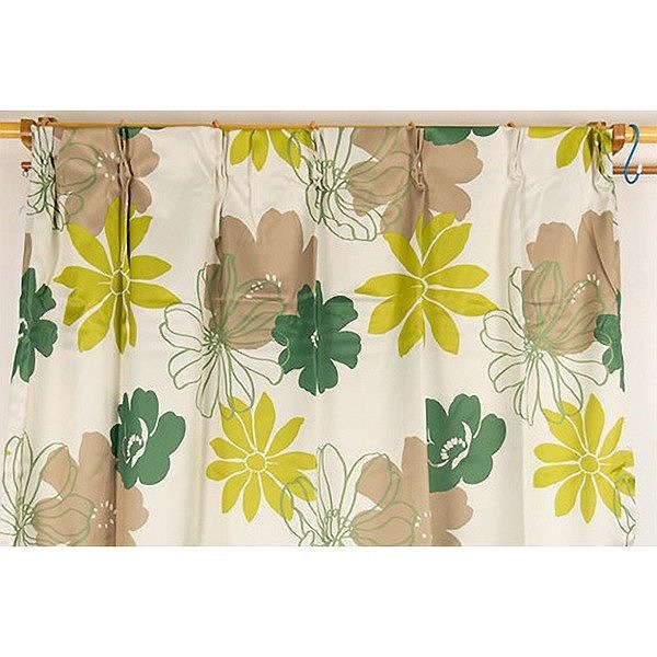 ■南国 遮光カーテン 目隠し 2枚組 100×135cm グリーン 花柄 洗える ソラン 九装