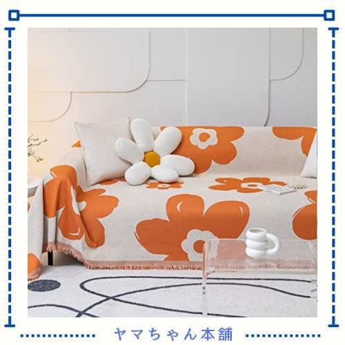 ◆商品名:マルチカバー 長方形 大判 おしゃれ ソファーカバー 2人掛け 1人掛け 北欧風 犬 猫 キズ防止 汚れ防止 花柄 シェニール織 フリンジ付き