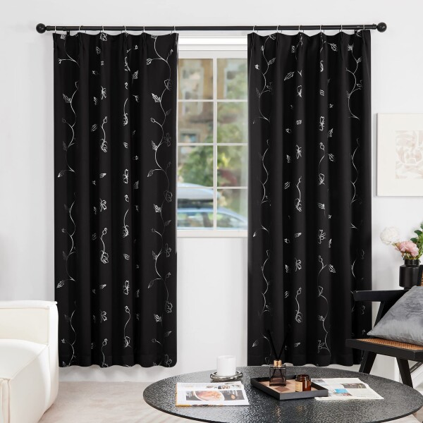 ■Deconovo 1級遮光カーテン 花柄 省エネ 昼夜目隠し 銀箔プリント 2枚組 幅100cm丈110cm ブラック