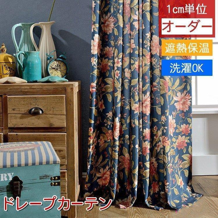 ■カーテン オーダーメイド 遮光 半遮光 おしゃれ 花柄 遮熱 ドレープカーテン レースカーテン 洗濯機洗える UVカット 両開き 丈直し オー