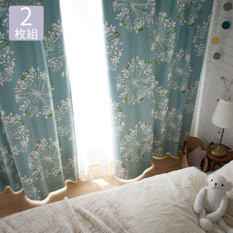 ■カーテン 遮光 2級 2枚組 幅100×丈200cm 花柄 フラワー 植物柄 掃出窓 100×200 日本製 ナチュラル お洒落 おしゃれ 丸洗い 洗える ウォ
