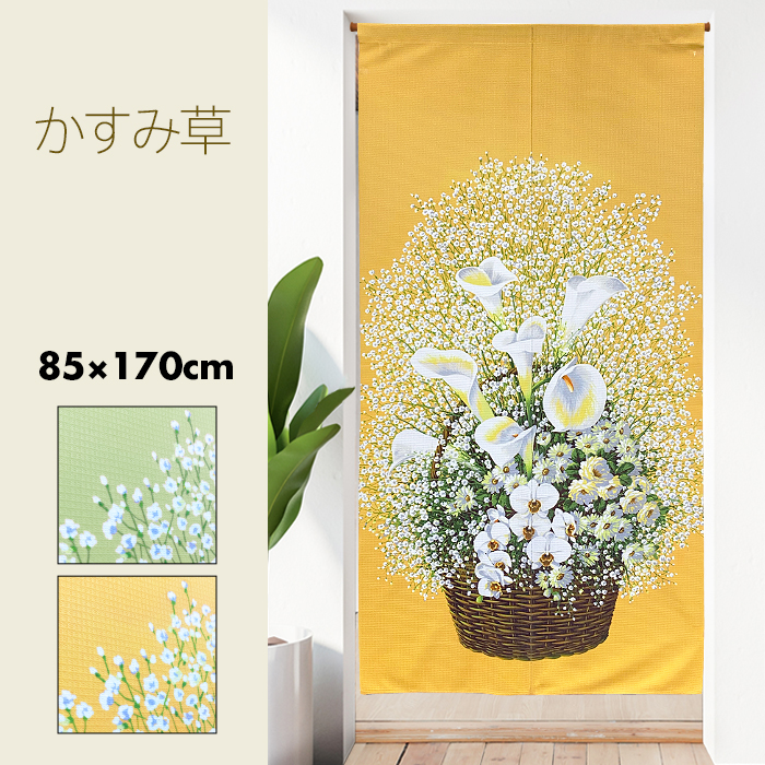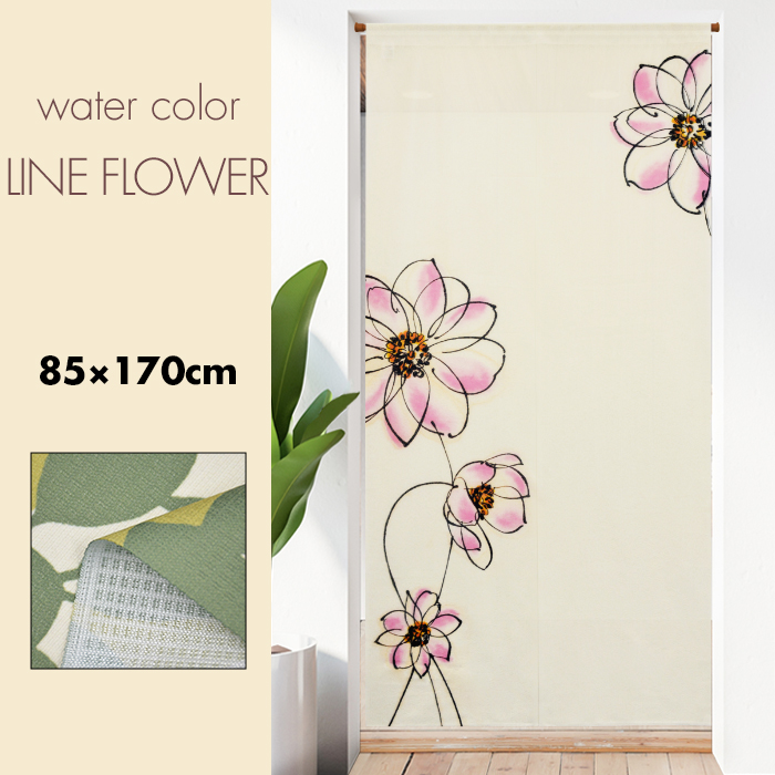 ■のれん おしゃれ カーテン 間仕切り 目隠し ロング 花柄 ボタニカル ナチュラル モダン 北欧 水彩ラインフラワー 85×170cm