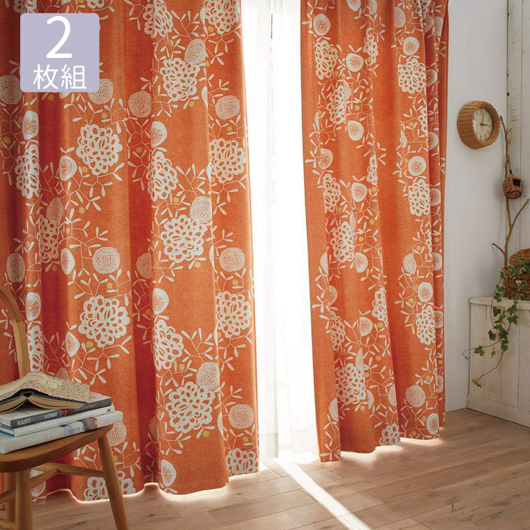 ■カーテン 遮光 2級 2枚組 幅100×丈178cm リース 花柄 フラワー 植物柄 掃出窓 100×178 日本製 ナチュラル お洒落 おしゃれ 丸洗い 洗え