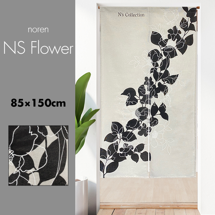 ■のれん 暖簾 おしゃれ カーテン 間仕切り 仕切りカーテン 目隠し フラワー 花柄 ナチュラル ボタニカル モノトーン モダン NSフラワー 85