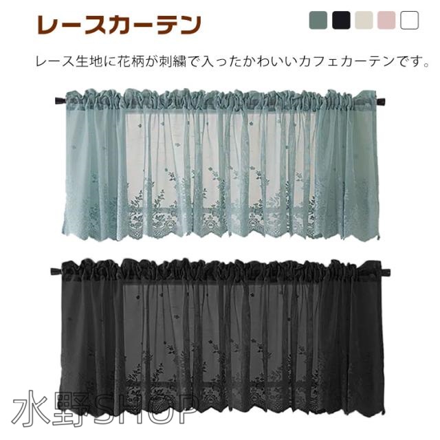 カフェカーテン レース 花柄 刺繍 おしゃれ 北欧 小窓用 カフェ カーテン 目隠し UVカット 遮熱 ホワイト ベージュ ブルー ブラック ピンク 出窓 小窓 レースカーテン 突っ張り式 模様替え リビング キッチン エレガント シンプル 新生活 部屋アレンジ プレゼント