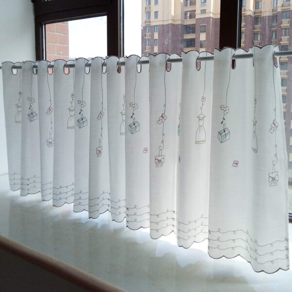 ■可愛い 刺繍 花柄 カフェカーテン おしゃれ キッチン 外からは見えない 目隠しパネル カーテン 北欧 小窓用 カフェ屋 喫茶店 間仕切り 飾