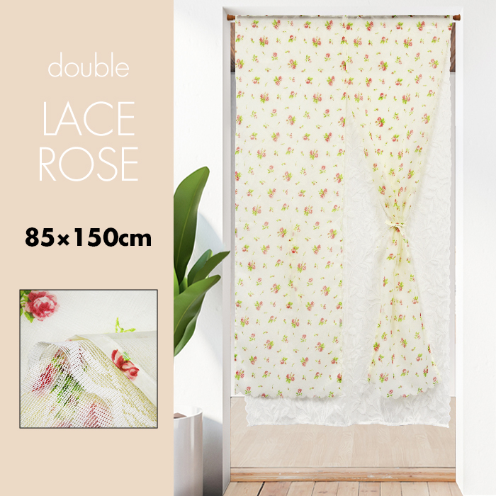 ■のれん 暖簾 おしゃれ カーテン 間仕切り 仕切りカーテン 目隠し 二重 二重暖簾 レース暖簾 花柄 ボタニカル ナチュラル バラ フラワー
