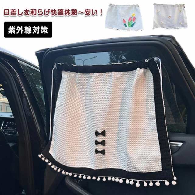 カーテン 車中泊グッズ カーテン 花柄 リア席サイド用 ベビー 車 紫外線対策 日差し 吸盤取り付け らくらく簡単カーテン リボン 日よけ サイドカーテン 車内カーテン UVカット 目隠し 授乳 日よけ