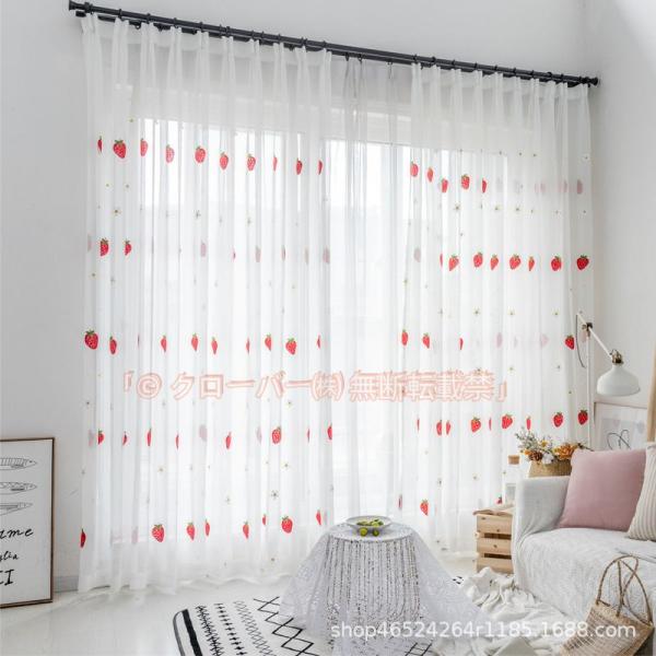 ■レースカーテン 1枚 lace 立体刺繍 カーテン 花柄 いちご クローバー株式会社 ポリエステル オーダー 刺繍 きれい 立体感 北欧風 かわい