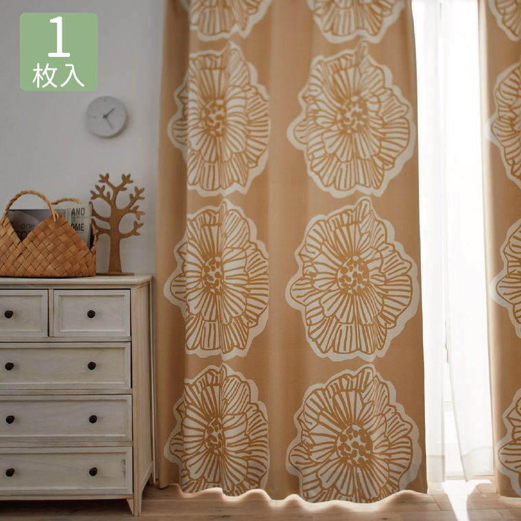 ■カーテン 遮光 2級 幅100×丈135cm (1枚入)大輪 花柄 フラワー 植物柄 腰高窓 100×135 日本製 ナチュラル お洒落 おしゃれ 丸洗い 洗え