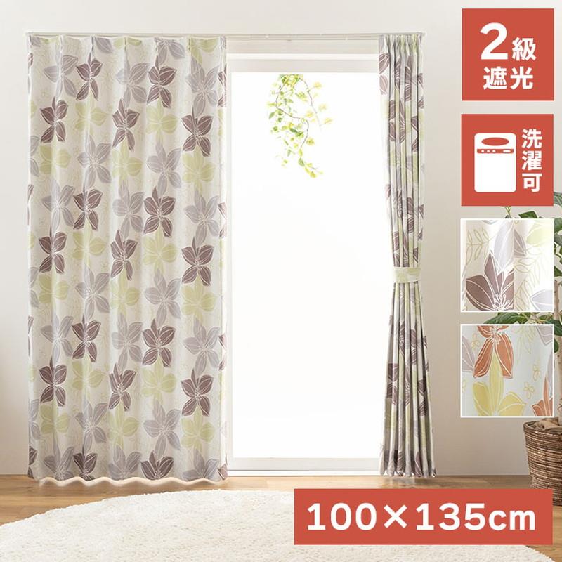 ■カーテン ドレープカーテン 2枚セット 幅100x丈135cm ボタニカル 花柄 遮光 2級遮光 形状記憶 洗濯機で洗える