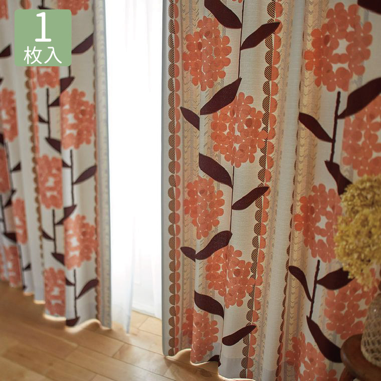 ■商品説明 ●2級遮光付きのドレープカーテンです。 ●大胆な花柄のタッチがかわいらしいのが特徴です。 ●2級遮光ですので、お部屋が暗くなりすぎず光を程よく取り込めます! ●こちらのカーテンにはウェーブを綺麗に保つ"形状記憶加工"を施しており、洗濯しても型崩れしません。 ●同色のタッセルが付属されております。 ●洗濯機での洗濯が可能なカーテンなので、お手入れも簡単です。 ■商品詳細 サイズ:幅100x丈135cm カラー:オレンジ/ブラウン 組成:ポリエステル100% 原産国:中国製 洗濯表示:洗濯可(洗濯ネット使用) ※掲載写真は出来る限り実物の色に近づけるよう加工しておりますが、撮影環境やお客様のお使いのモニター設定、お部屋の照明等により実際の商品と色味が異なる場合がございます。ご了承ください。