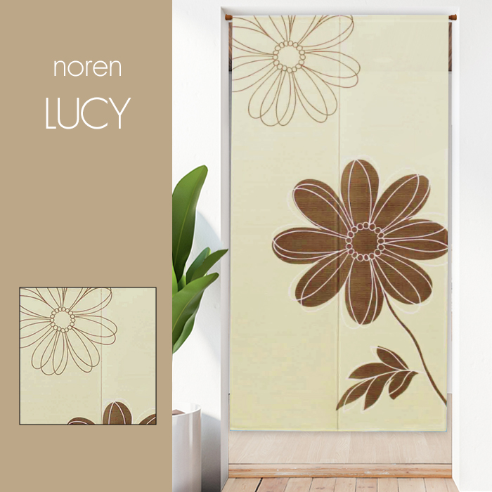 ■のれん おしゃれ カーテン 間仕切り 目隠し ロング 北欧 花柄 ボタニカル ナチュラル フラワー ルーシー 85×170cm