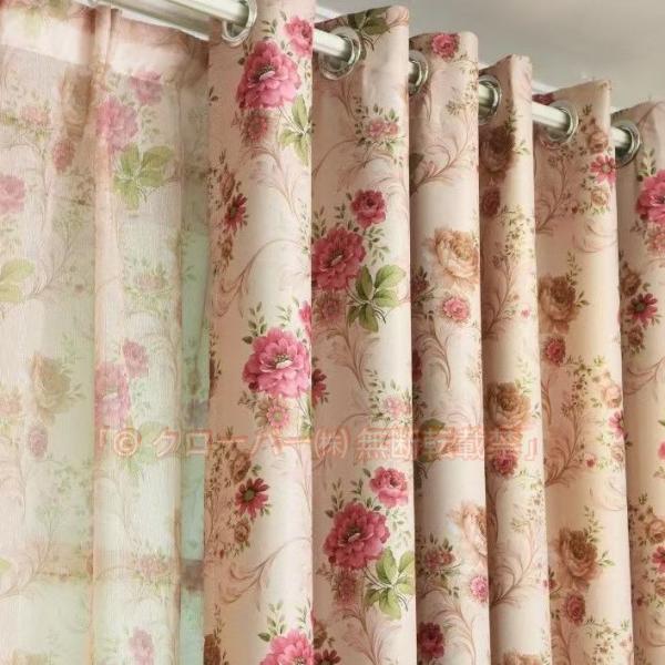 ■遮光 カーテン 約幅100cm×長さ178cm×2枚セット ローズ 花柄 3級遮光 洗える ウォッシャブル 形状記憶 裏地付き タッセル付き 遮光カー
