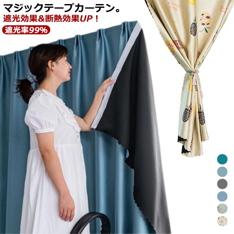 ■1級 1枚 リビング 面ファスナー 遮光 マジックテープ 穴不要 遮光率99% のれん カーテン 防寒 UVカット 断熱 冬 遮光カーテン 夏 花柄