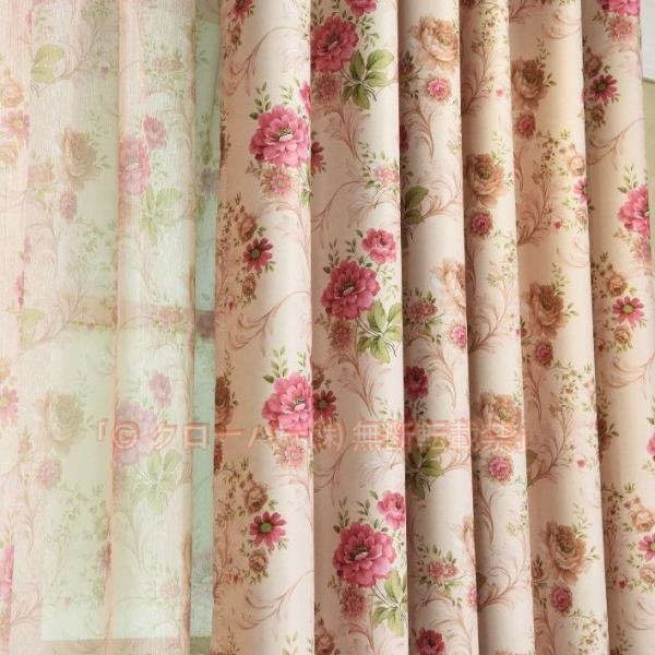 ■オーダー カーテン おしゃれ 北欧 バラ 柄 リビング クローバー株式会社 プリント 飾り 花柄 かわいい 遮光 ドレープ 片開き1枚 両開き2