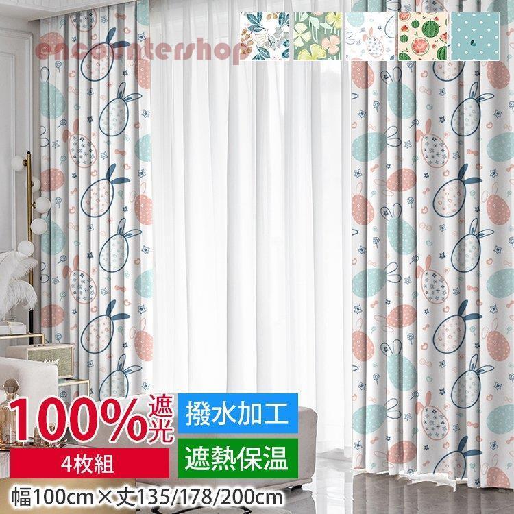 ■カーテン 遮光カーテン 洗える 厚地カーテン 完全遮光 お得サイズ 既製品 4枚セット 柄 花柄 可愛い 子供 子供部屋 カーテン レース セッ