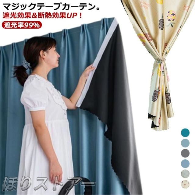 ■面ファスナー カーテン 1枚 遮光カーテン 1級 遮光 遮光率99% マジックテープ 穴不要 遮光 夏 UVカット 断熱 冬 防寒 目隠し 間仕切り
