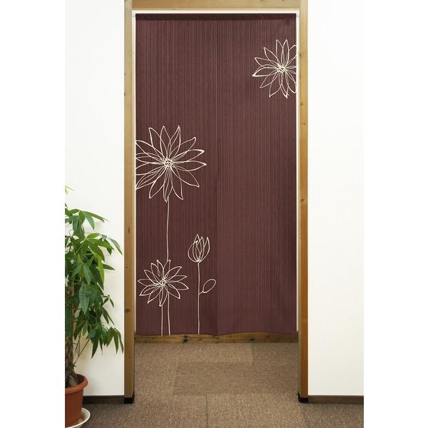 ■のれん おしゃれ 北欧 暖簾 間仕切り 玄関 ロング ラインフラワー ブラウン ロング 幅85x170cm カーテン
