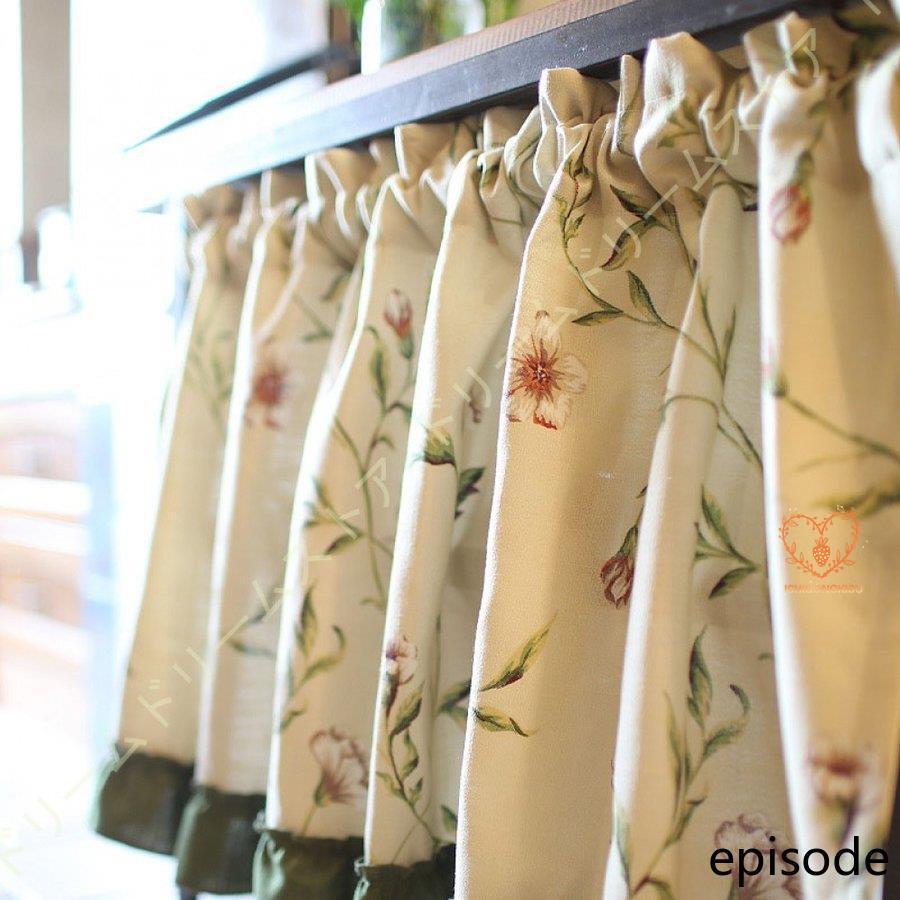 ■田園風 可愛い 花柄と葉っぱ カフェカーテン おしゃれ キッチン 美しい カーテン 北欧ハーフカーテン 小窓用 カフェ屋 喫茶店 間仕切り