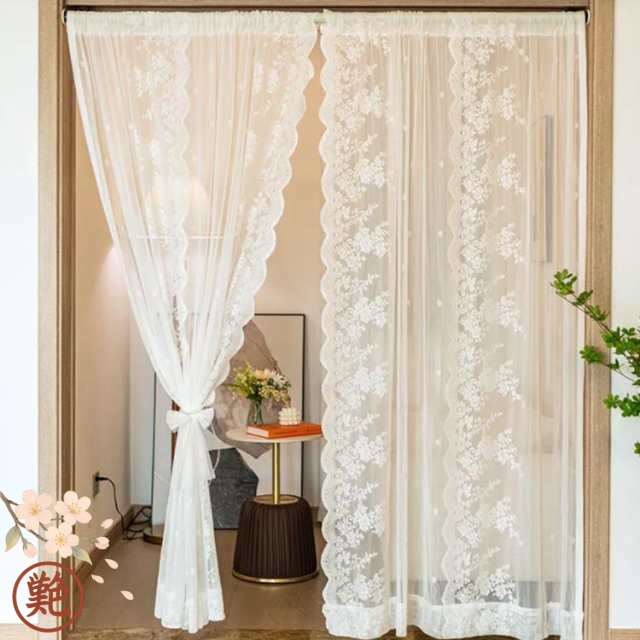 送料無料 1枚入り 間仕切りカーテン のれん レースカーテン 暖簾 つっぱり棒 間仕切り カーテン ドアカーテン おしゃれ エレガント つっぱり式 マジックテープ式 レース 花柄 お洒落 北欧 洋風 ロング 取り付け簡単 玄関 ドア