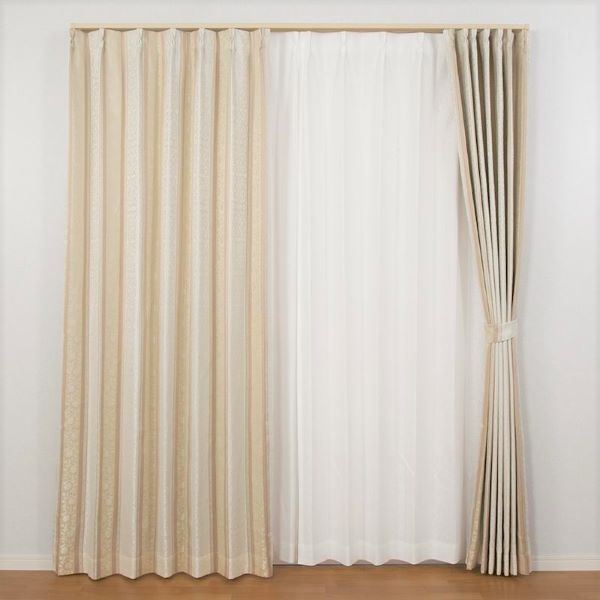 ■カーテン 明るい光と風をほどよく通す遮熱 24時間見えにくい UVカット レース 幅100×長さ176cm×2枚/幅200×長さ176cm×1枚 ニッセン ni