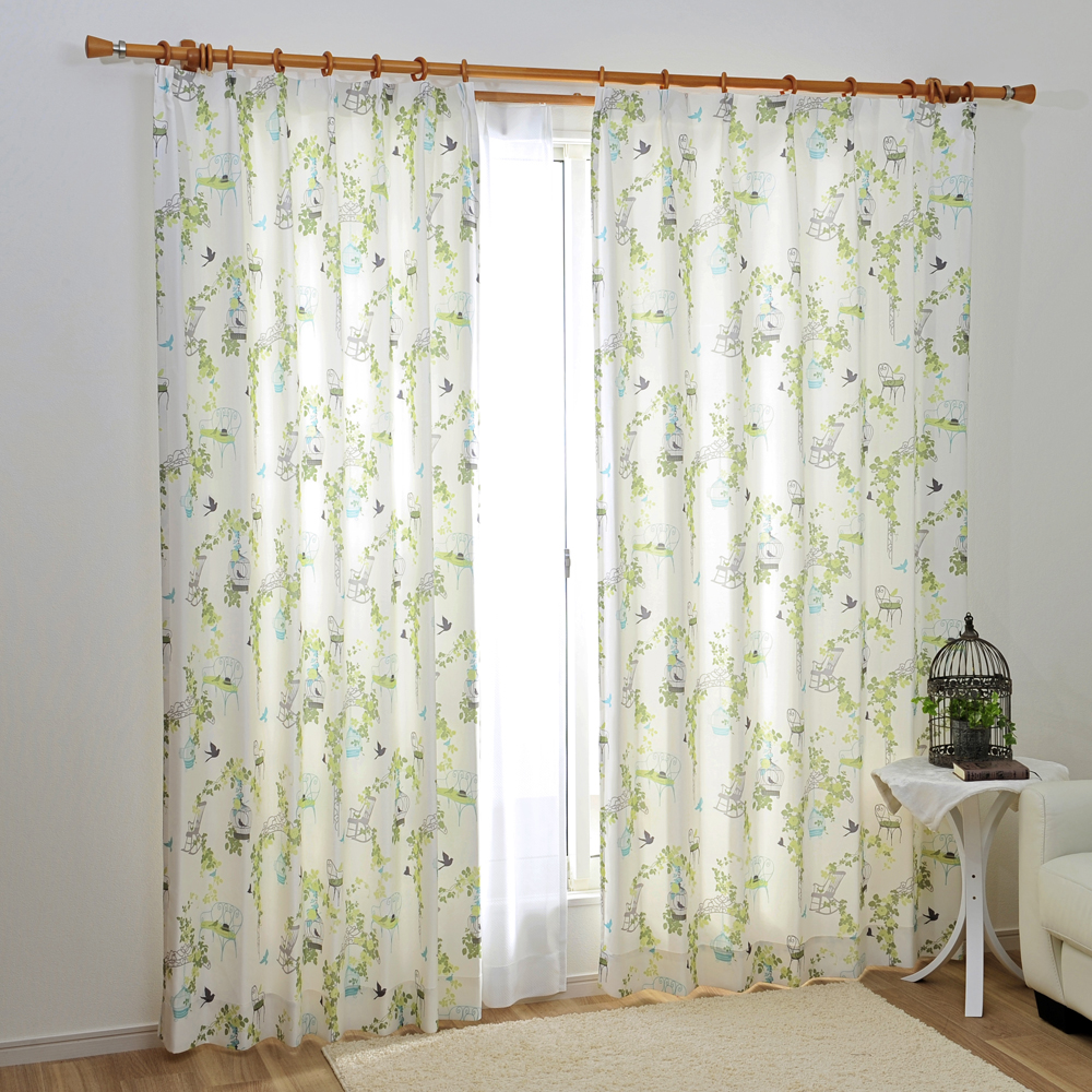 「カーテン 非遮光 セシカ プリーツ加工 小鳥と花柄 鳥かご柄 グリーン 100x200cm 2枚組 クレアール」はホームセンターセブンが販売しております。