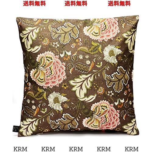 ■Kuai クッションカバー 45cm レトロフラワー ヴィンテージ風 モダン 花柄 アジアン 北欧 インテリア ポリエステル (ブラウン)