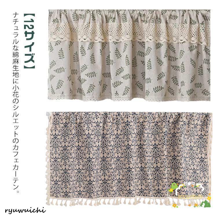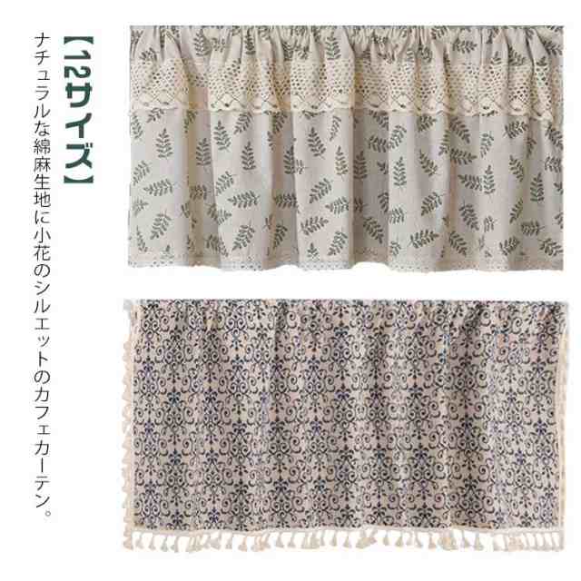 ■カフェカーテン 綿麻 小窓用カーテン コットン リネン 花柄 北欧 ナチュラル おしゃれ 模様替え リビング キッチン 部屋 目隠し 遮光 断