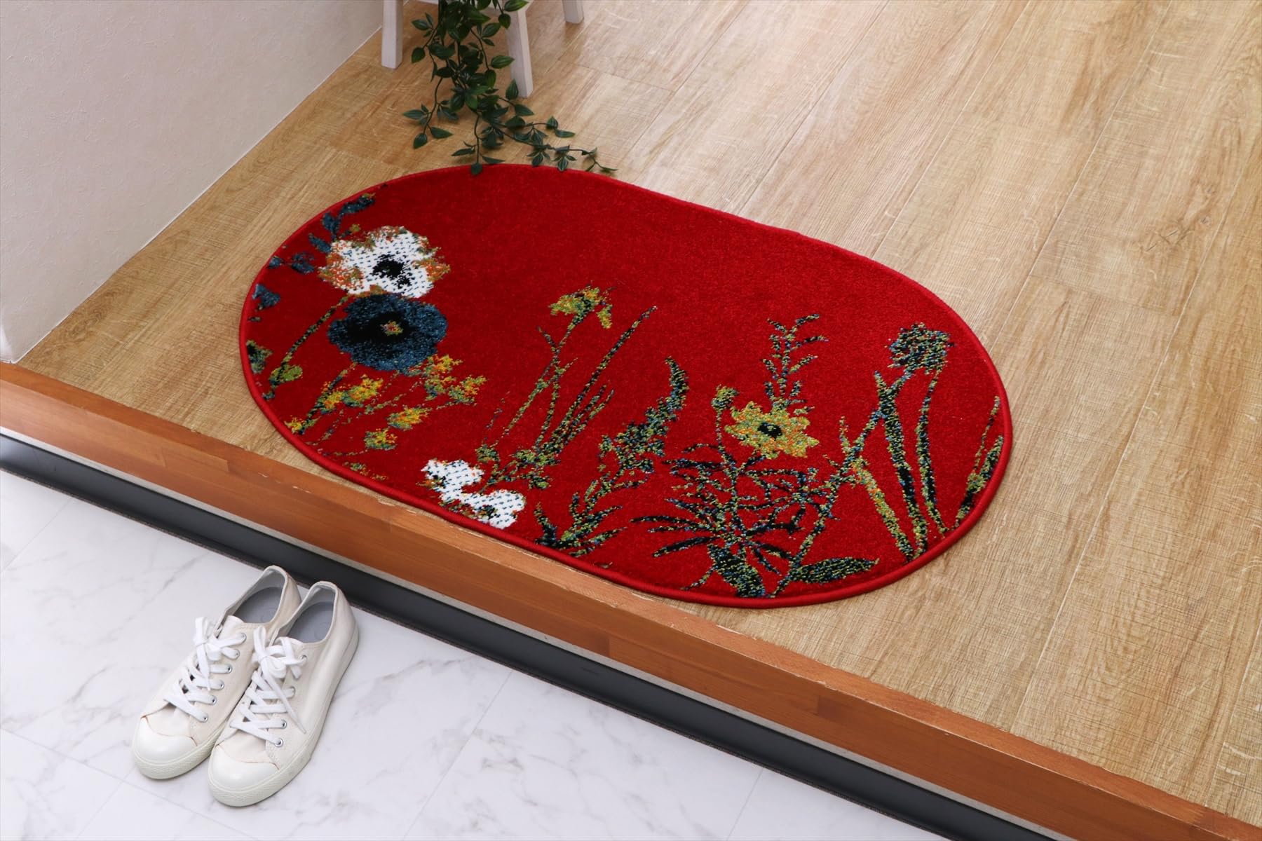 ◆商品名:イケヒコ マット 玄関 屋内 屋外 輸入 ボタニカル レッド 約60×90cm楕円 だ円 トルコ製 ウィルトン織り 花柄 ボタニカル 上品 抗菌防臭