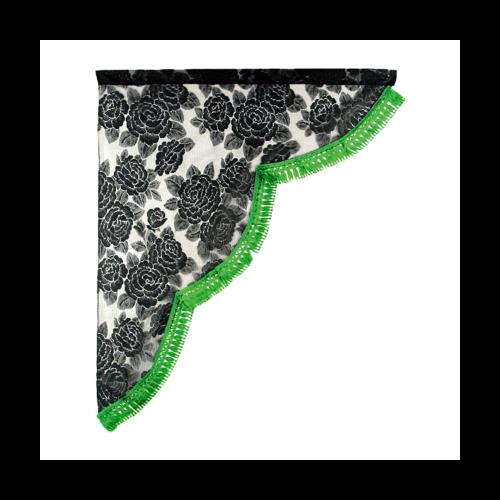 ◆商品名:雅 サイドカーテン バラ柄レースサイドカーテン L(横700mm×縦850mm) フレンジ:グリーン MSC-RA-GRL