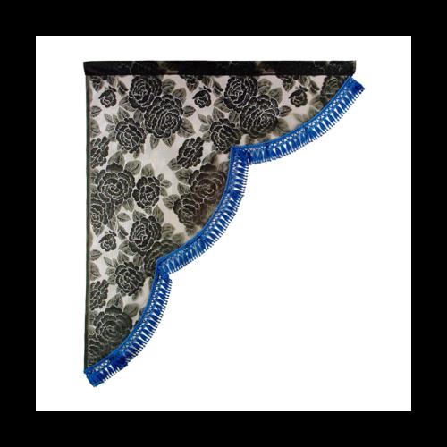 ◆商品名:雅 サイドカーテン バラ柄レースサイドカーテン L(横700mm×縦850mm) フレンジ:ブルー MSC-RA-BLL
