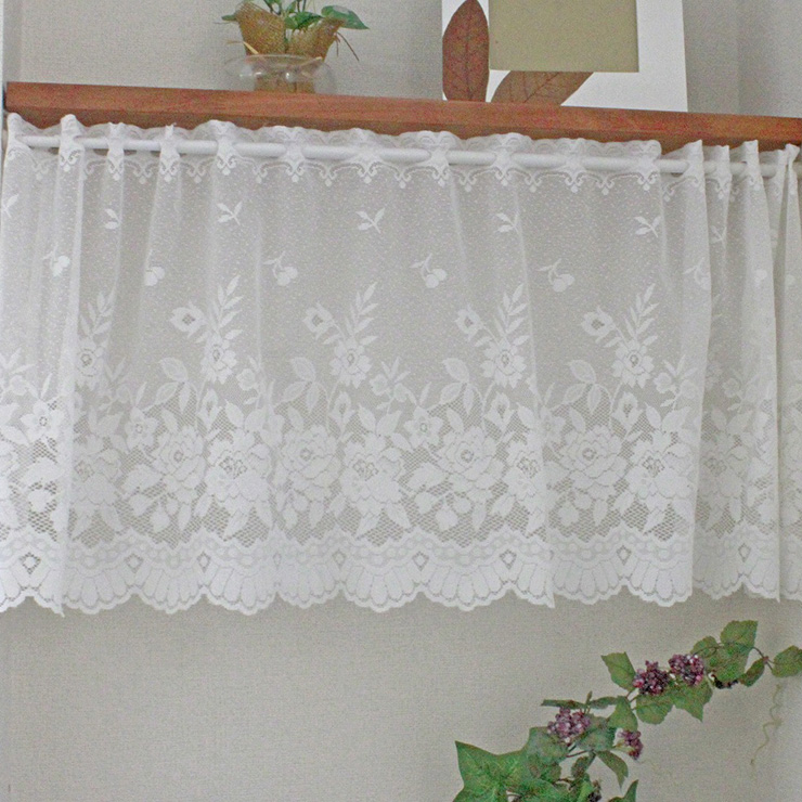 ■日本製 カフェカーテン バラ柄 レース 幅145cm×丈48cm 窓辺 トイレ 仕切り 装飾 目隠し カモフラージュ かわいい おしゃれ(代引不可)【