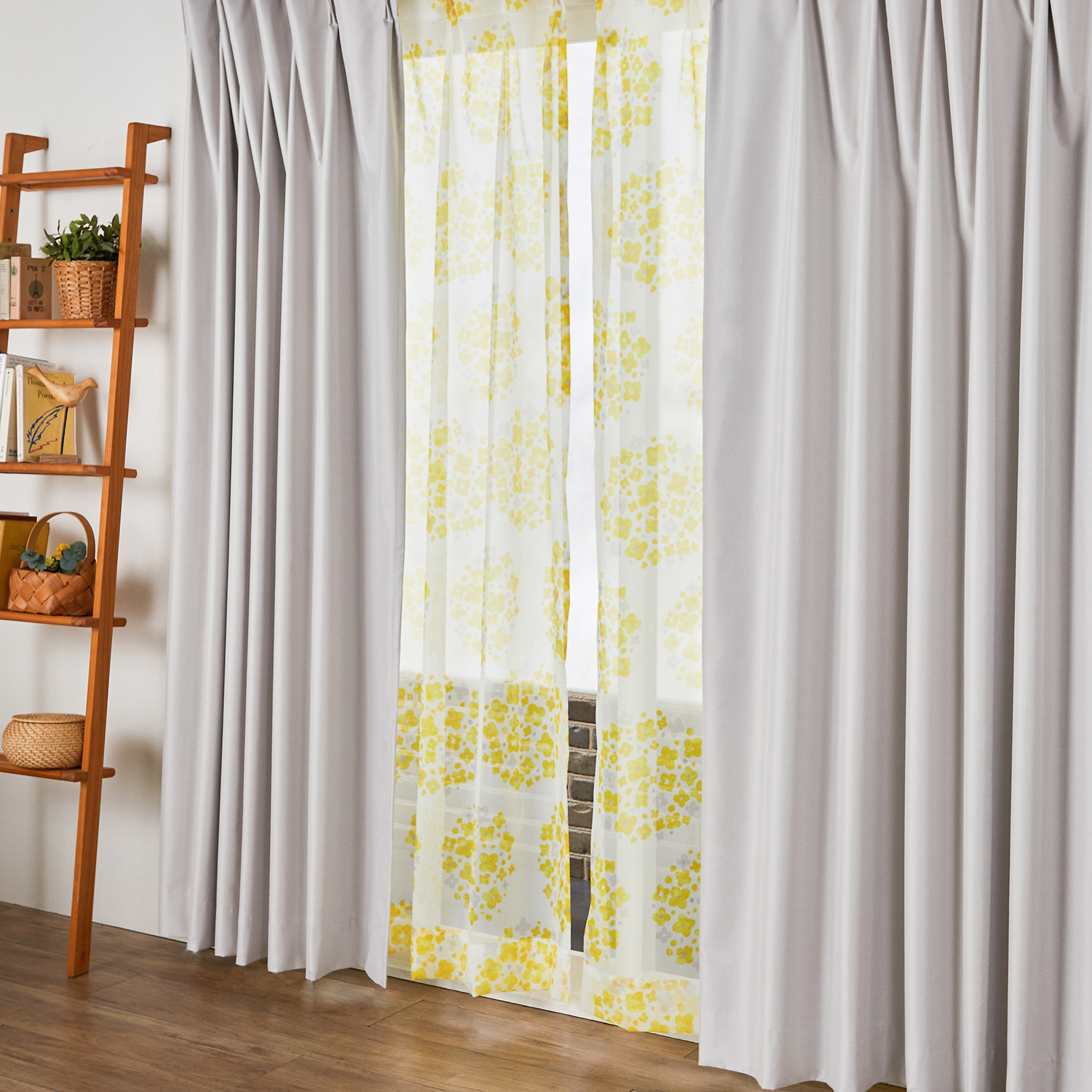 1窓分の厚地カーテン2枚と薄地カーテン2枚、計4枚がセットになったカーテンセット(幅約200cmは厚地1枚、薄地1枚の計2枚組となります)手軽にセンスよく模様替えできる4枚セットお好みの色・柄の組み合わせをお選びいただけます【厚地カーテン】遮光率100%の生地を使用寝室やリビングにもぴったり壁紙や床材に馴染みやすいライトグレーとグレージュからお選びいただけます【薄地カーテン】フィラメントボイルに5種類の柄をプリントしたレースカーテンぱっとお部屋が明るくなる可愛いデザインフラワー柄やリーフ柄が窓辺をおしゃれに演出してくれます【しっかり光を遮る 1級遮光】~室内が真っ暗になり、隣にいる人の顔が識別できないレベル~1級遮光カーテンは、寝室を暗くして睡眠をしっかりとりたい方、朝日や強い西日を遮りたい方におすすめです【騒音問題とさようなら 防音効果】~室内の音、室外の音を軽減~外に漏れたくないテレビの音や赤ちゃんの泣き声、ピアノの音などの生活音を軽減しますまた外から入ってくる車の音や犬の鳴き声を軽減します※データおよび性能は無響試験室、音域別の結果ですので、一般環境とは感じ方に差異がございます【年中快適に 遮熱・保温効果】~夏は遮熱、冬は保温効果。冷暖房効率もアップし、節電し省エネ、室内を快適に~夏の直射日光熱をカットし、室温の上昇を抑えます冬は保温、冬の外の冷気をカットし、室温の低下を防ぎます